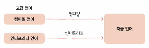 - 저급언어 : 컴퓨터가 이해하고 실행하는 언어