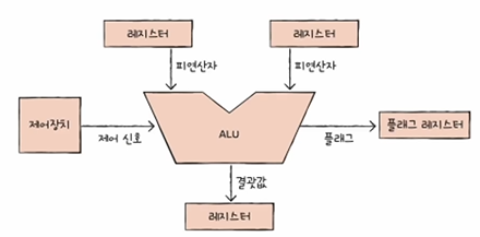 - 레지스터로부터 피연산자를 받아들이고, 제어장치로부터 제어 신호를 받아들인다.