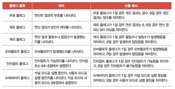 - 플래그 값(CPU가 연상 결과로서 받아들이는 부가적인 정보)