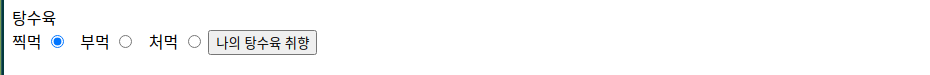๋ด ํ์์ก ์ทจํฅ : <%=request.getParameter("tangType") %> <br>